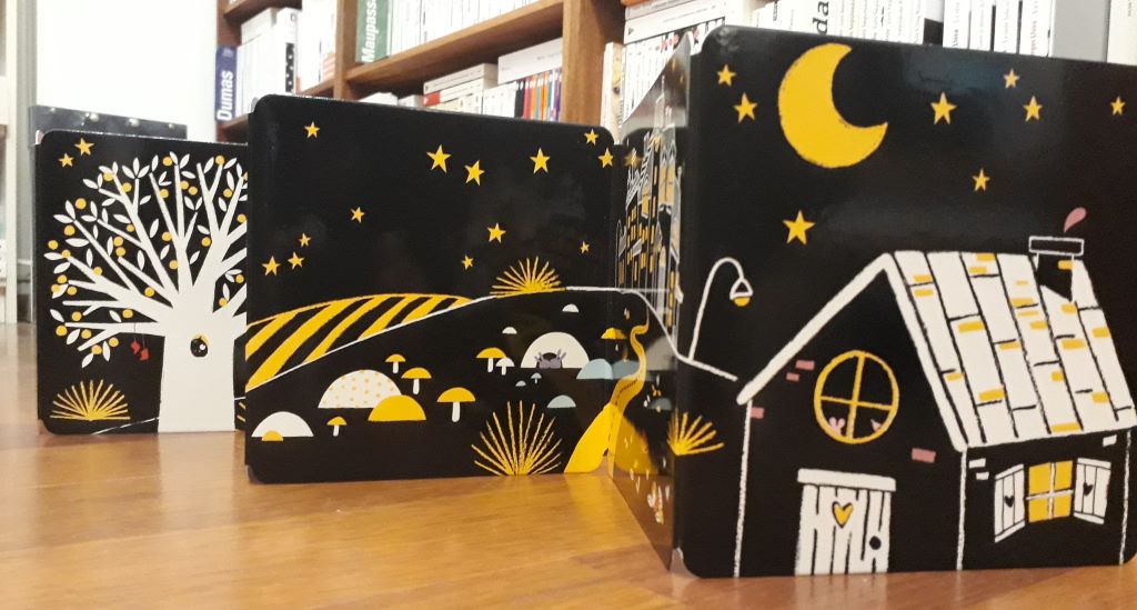 Commençons tout en douceur et tendresse avec Doux Dodo (Cécile Hudrissier, Didier Jeunesse), ce fabuleux petit livre-accordéon. Six illustrations recto-verso de petites bêtes se laissant doucement aller dans le sommeil. Au verso, un paysage de nuit calme et rassurant. A observer avant le coucher ou à simplement poser en décoration tout près de l’oreiller. Dès la naissance, dès 1 an. 9.50 €